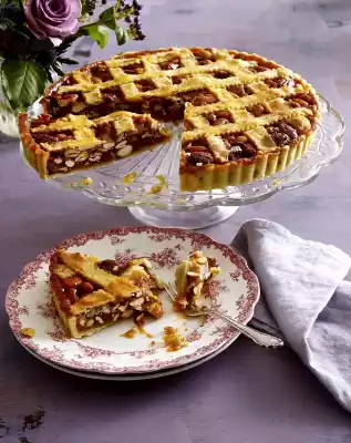 Remove the tart from the oven. Let it cool down for about 10 minutes and remove from the mould. Cut into pieces and serve.
