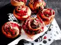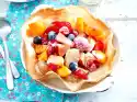 Tear into pieces, sprinkle with 1 tablespoon of sugar and bake until done. Serve with apple compote and cranberries.