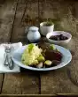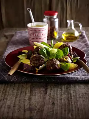 Cut the beetroot into slices. Clean, wash and shake dry lamb's lettuce. Remove the outer leaves from the chicory. Remove the remaining leaves, wash and drain. Mix salads, beetroot and orange fillets. Arrange meatballs and salad, sprinkle with vinaigrette