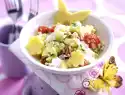 Pluck the needles from the remaining rosemary and chop very finely. Wash and halve the grapes. For the vinaigrette, mix vinegar, 1-2 teaspoons sugar, 1/2 teaspoon salt and pepper, fold in oil.