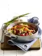 In the meantime, clean, wash and cut the peppers into pieces. Peel and slice the onions. Heat the fat. Fry peppers and onion slices for 10 minutes. Add remaining herbs and season with salt and pepper.