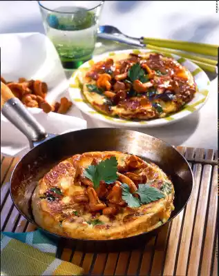 The omelette is a good alternative to meat: eggs and chanterelles provide high-quality protein, the flour B vitamins