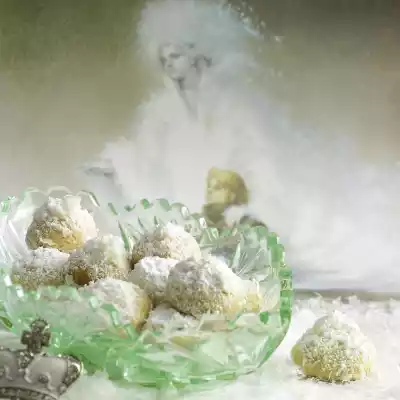 Mix powdered sugar and grated coconut. Turn the balls immediately in the coconut mixture. Let it cool down.