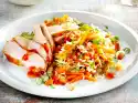 Add chorizo and pimientos to the potatoes and fry for 2-3 minutes. Season with lemon juice, salt and pepper. Wash the parsley and chop the leaves. Sprinkle the pan with olive mixture and parsley. Eat dip with it.