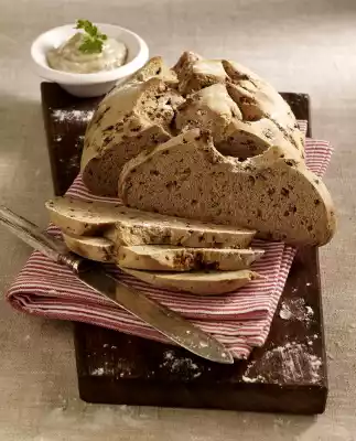 Knead the dough for another 5 minutes until smooth, then form into a loaf. Score the surface crosswise with a knife and let it rise again for about 20 minutes. Place the bread on a baking tray lined with baking paper. Bake in a preheated oven (electric cooker: 200 °C/ convection oven: 175 °C/ gas: level 3) for 30-40 minutes. The bread must sound hollow when you tap the bottom. Remove bread from the oven and let it cool down for about 30 minutes. Lard tastes good with it