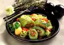 Peel onions and cut them into rings. Peel garlic and chop finely. Wash the oregano, dab dry and remove the leaves. Wash rosemary, shake dry, pluck needles from twigs.