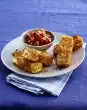 Meanwhile roast bread. Cut out 4 circles from each slice of bread and place them on a baking tray lined with baking paper. Sprinkle with cheese and bake in a preheated oven (electric cooker: 200 °C/ gas: level 3) for about 4 minutes.