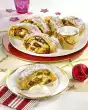 Take the cake out of the oven and let it rest for about 10 minutes. Turn out of the tin and let it cool down on a cake rack. In the meantime, chop the chocolate coating and melt over a warm water bath. Place half of it on a marble board (or the back of a baking tray) and spread thinly. Allow to set and scrape off rolls with a spatula. For the orange cream, soak gelatine in cold water. Bring 300 ml juice and 250 g sugar to the boil. Mix starch with 100 ml cold water, stir into the juice and simmer for another 1-2 minutes. Squeeze the gelatine. Stir gelatine and 60 g butter into the juice. Quickly stir in egg yolks. Cut the cooled cake into 4 cake layers.