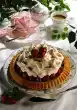 Remove the fillets from the parting skins with a sharp knife. Mix liqueur and orange juice and sprinkle the bottom with it. Whip cream until stiff, add coconut cream. Spread the cream on the cake base and edge. Roast the coconut chips and grated coconut one after the other in a pan. Place orange fillets on the cake, sprinkle with coconut chips and decorate the edge of the cake with coconut flakes. Makes about 12 pieces