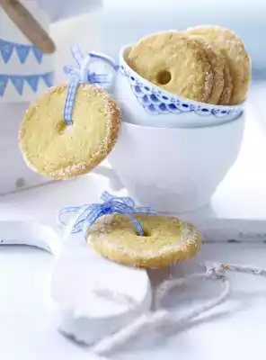 Bake orange thalers in a hot oven for 10-12 minutes. Then make a hole in the middle of the still hot biscuits with a punched spout (7 mm Ø). Leave to cool on the tray. Roll the cookie edges in the remaining cinnamon sugar again. The thalers keep in tins between parchment paper for 3-4 weeks.