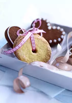 Bake in the preheated oven (electric cooker: 175 °C/ convection oven: 150 °C/ gas: see manufacturer) for 10-12 minutes one after the other. Then make a hole in the middle of the still hot biscuits with a 7 mm Ø nozzle. Leave to cool on the tray. Roll the cookie edges in the remaining cinnamon sugar again. The thalers keep in tins between parchment paper for 3-4 weeks.