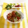 Mix lamb's lettuce, onions, orange filets and marinade. Arrange apples and liver on top. Chop the almonds coarsely and sprinkle over them