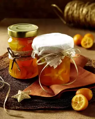 Put the orange juice, jam sugar, kumquats and orange zest in a wide, high pot. Bring to the boil while stirring, add carambolic slices, cook for about 4 minutes until bubbly. Possibly make a gelling test.