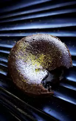 Mix eggs and sugar. Stir in warm chocolate-orange butter. Sift the flour on top and stir in briefly. Spread 2-3 tablespoons of dough (it is quite liquid!) into each of the moulds. Bake in a hot oven for about 12 minutes (the surface of the cakes should still shine in the middle).