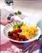 Beat the egg yolks, grated orange peel, butter-vanilla flavouring and 1 tablespoon of sugar until creamy. Sweeten orange juice with the remaining sugar. Squeeze out the gelatine, dissolve, add orange juice while stirring.