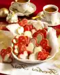 Chop the candied orange peel very finely. Whip the truffle mixture again briefly and stir in the candied orange peel. Put the truffle mixture into a piping bag with a medium-sized star-shaped spout. Quickly, with hands as cool as possible, squirt a tuff into each star-shaped spout. Decorate immediately with orange strips and sprinkle with pistachios. Put the chocolates in a cool place for 1-2 hours. Results in 56 stars