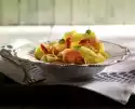 Pour into a sieve and drain well. Meanwhile peel onions and garlic and chop finely. Dice the bacon. Stone the olives if necessary. Leave the bacon in a pan without fat until crispy.