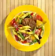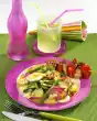 Wash the herbs and, except for a little mint, cut them finely. Fold into the vegetables and season again. Garnish with the remaining mint. The salad tastes warm or cold. Served with: creamy yoghurt and flat bread