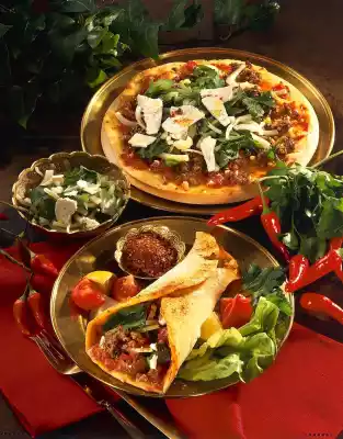 Dice half finely, cut the rest into strips. Wash the chilli pepper, cut lengthwise, remove seeds and cut into fine rings. Mix minced meat, diced onion and chili. Season with salt, paprika and cumin. Divide dough into 8 portions. Roll out to thin, round pizzas on a floured work surface. Spread chunky tomatoes and minced meat on top. Sprinkle with melted fat. Bake in the preheated oven (electric oven: 200 °C/ gas mark 3) on floured baking trays one after the other for about 15 minutes. Keep warm when stacked on top of each other. In the meantime, wash the parsley and pluck off the leaves. Cut sheep's cheese into thin pieces.