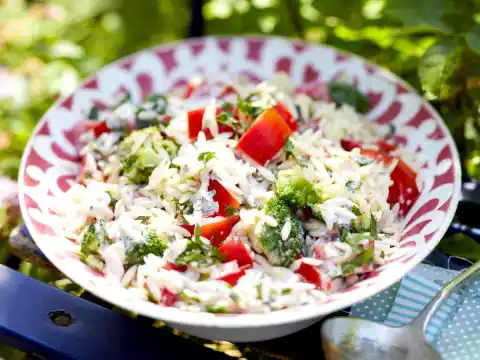 Mix pasta, broccoli, tomatoes, parsley and yoghurt sauce. Season to taste again.