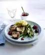 For the puree, peel the celery tubers, dice them coarsely and cook them covered with laurel in salted water for about 20 minutes until soft. Wash the lemon, dab dry and finely grate the peel. Squeeze the lemon. Drain the celery and warm the milk. Pour half to the celery and puree briefly with a hand blender. Gradually stir in the rest of the milk until the puree is creamy. Stir in butter and crème fraîche. Season to taste with salt, pepper, nutmeg, lemon peel and lemon juice