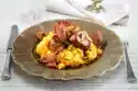 Whip 300 g cream until stiff and fold into the gelling cream. Take off a few spoonfuls of strawberry juice and mix with syrup. Stir into the ##strawberries##. Divide into glasses. Add the curd mousse. Cover and chill for about 30 minutes.