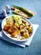 Wash and halve the potatoes. Put potatoes on a baking tray, drizzle with 2 tablespoons of oil, season with salt. Cook in the preheated oven (electric cooker: 200 °C/ circulating air: 175 °C/ gas: level 3) for 35-45 minutes.