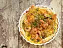 Remove the baking tray from the oven and pull the crêpe from the baking tray together with the baking paper. Spread the crêpe with orange cream, leaving a rim of approx. 2 cm all around. Cover with salad leaves and smoked salmon.
