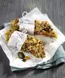 Put half of the compote into a high mixing bowl and puree with a hand blender. Mix the puree with the remaining compote and let it cool down. Roughly chop the nuts. Roast in a pan without fat while turning, remove. Layer compote and oat chia pudding alternately in 4 glasses (each with a capacity of approx. 250 ml). Decorate with nuts and one cinnamon stick each.