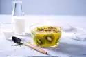 Mix the oat flakes with the soy drink and the vegetable yoghurt alternative in a bowl or glass.