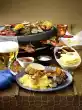 Deglaze with 1 1/2 litre of the meat stock. Tie parsley, bay leaf and thyme together and add peppercorns and cloves. Simmer covered for about 1 hour. Remove the tail pieces, remove the meat and put it back into the soup. Cover and cook again for about 30 minutes. Remove herb bundles. Season soup with salt, pepper and possibly some red wine. Serve garnished with fresh thyme