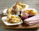 Clean, wash and cut the peppers into strips. Sauté in hot oil, pour on Asian sauce, cook for about 8 minutes. Season to taste with salt and rose paprika. Season rice with vinegar, salt, pepper and ground coriander.