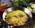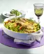 Add 50 ml water and cream. Stir in stock. Cook vegetables for about 10 minutes. Grate cheese and stir into the sauce. Season with salt, pepper and nutmeg. Wash the chives and cut into small rolls. Sprinkle over the vegetable pan
