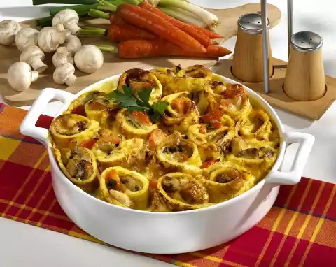 Place the pancake rolls in a greased casserole dish (22 cm Ø; 1.3 litres capacity). Mix the remaining sauce with 100 ml water. Season again with salt and pepper. Pour the sauce over the pancake rolls.