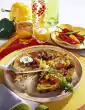 Deglaze with tomatoes, bring to the boil and simmer covered for about 5 minutes. Keep warm. Stir mineral water into the pancake batter. Heat clarified butter in 8 portions in a pan (base 20 cm Ø, top 26 cm Ø), make 8 pancakes from the pancake batter, one after the other, and bake them until golden brown while turning.