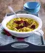 Whisk the eggs, 1 pinch of salt, milk and flour with the whisk of the hand mixer to a smooth dough. Wash the marjoram, dab dry and pluck the leaves from the stalks. Heat the oil in portions in a frying pan. Bake 4 pancakes one after the other. Cover with marjoram leaves before turning.