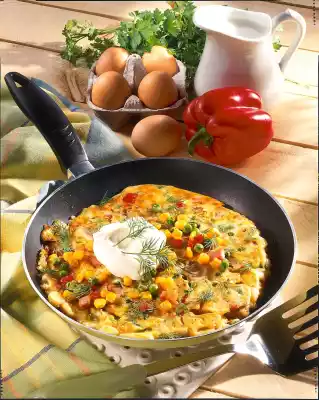 Stir 3 tablespoons of mineral water into the dough. Pour over the vegetables and bake at low heat on both sides for 6-8 minutes until golden brown