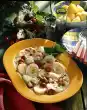 Roll up tightly and chill for about 20 minutes. In the meantime melt the sugar in a pan until golden brown. Deglaze with liqueur and juice, let it boil for about 2 minutes. Cut the pancakes into small pieces. Serve with the sauce. Sprinkle with remaining walnuts and serve decorated with mint