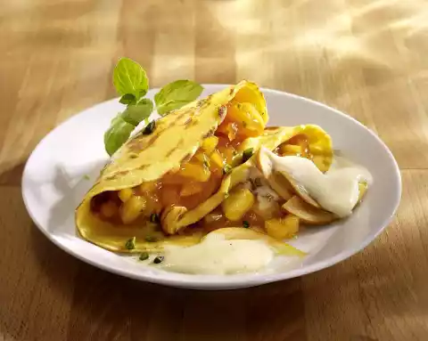 Stir in the flour mixture by the spoonful one by one. Heat some clarified butter in a coated pan (approx. 18 cm Ø) and add 1/8 of the dough. Fry the pancakes at medium heat for about 3 minutes on each side until golden brown.