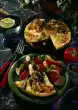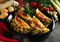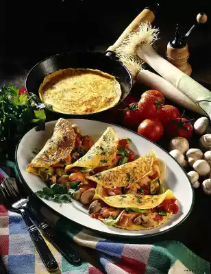 Mix flour, salt, eggs and milk until smooth. Let the dough swell for about 10 minutes. Clean mushrooms and leek. Wash and chop both. Heat 1 tablespoon of oil. Cut the sausages into slices and fry them. Take them out. Sauté mushrooms and leek in frying fat. Chop tomatoes, add liquid and cream. Let simmer for about 10 minutes. Season to taste. Bind with sauce thickener. Add the sausages and heat up. Heat the rest of the oil in a pan in portions and bake 4 golden brown pancakes. Wash the parsley and chop except for a few leaves. Fill the pancakes with the sausage ragout and serve. Garnish with parsley