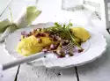 Heat the oil in a pan (24 cm Ø). Pour the dough into the pan, cover and let it rest for about 10 minutes over a low heat, then slide the pancake onto a flat, oiled lid and put it back into the pan.