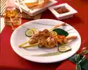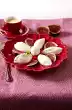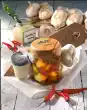 Peel the ginger and chop very finely. Put it in a pot with 75 g sugar and caramelise it while stirring. Add frozen fruit and 3 tablespoons of water. Cover and bring to the boil. Stir starch with a little water until smooth. Stir into the boiling compote. Let simmer for about 1 minute while stirring. Remove from the heat, pour into a bowl and let cool off. Serve the compote with the panna cotta. Decorate with melissa