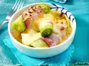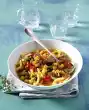 Pour the sauce, vegetables and meat over the noodles. Cut mozzarella into thin slices and place over the noodles. In a preheated oven (electric cooker: 200 °C/ convection oven: 175 °C/ gas: see manufacturer)