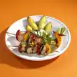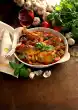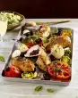 Mix with 1 tablespoon of oil and season with salt, spread around the chicken approx. 30 minutes before the end of the cooking time. Clean and wash the broccoli and cut into florets. Cook in boiling salted water for 6-8 minutes Drain and rinse with cold water. Melt the butter in a pot and brown the flaked almonds. Add broccoli and toss in almond butter. Season with salt and pepper. Serve everything garnished with parsley
