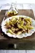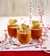 Pour off the vegetables, collecting the liquid and setting aside. Puree about three-quarters of the vegetables in the blender (looks nicer later when arranged if some strips remain whole).
