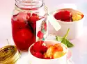 Then fry the onions and garlic in the olive oil and add the chopped vegetables. Add the strained tomatoes and the vegetable stock and bring to the boil. Stir frequently. Reduce the heat and simmer for 20 minutes until the pepper strips are soft.