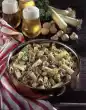 Possibly defrost the prawns. Clean, wash and chop the peppers. Peel onion and garlic. Dice onion and chop garlic