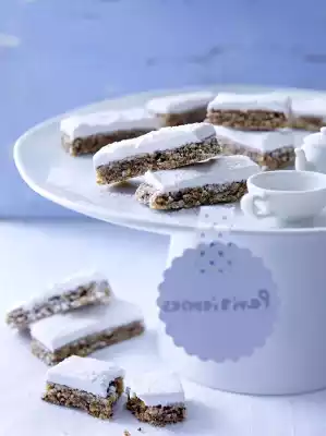 For the glaze, beat the egg white with 1 pinch of salt until very stiff. Sprinkle in the icing sugar, beating continuously. Finally stir in lemon juice