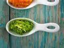 Cut parsley and mint into fine strands. Clean and wash the rocket and also cut it into fine strips. Clean, wash and quarter the tomatoes. Peel and finely chop the onion and the remaining garlic.