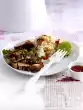 Add zucchini strips and 5 tablespoons of water to the hot frying fat. Steam zucchini for 3-4 minutes until soft, season with salt and pepper, add shrimps again and keep warm. Puree the parsley roots in the broth very finely with the chopping stick.